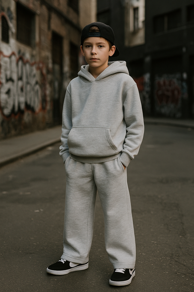 Completo fondo largo felpa drip basic bambino Grigio