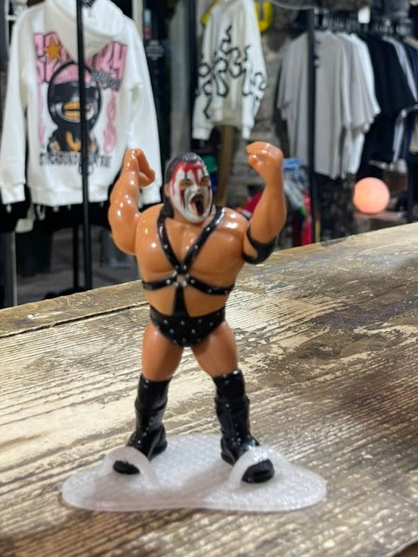 Direttamente dalla prima storica serie Hasbro, ecco Smash dei leggendari Demolition, con il suo look da guerriero del ring anni ’90. Maschera rossa e nera, outfit bondage e posa da powerhouse: puro stile old school WWF.