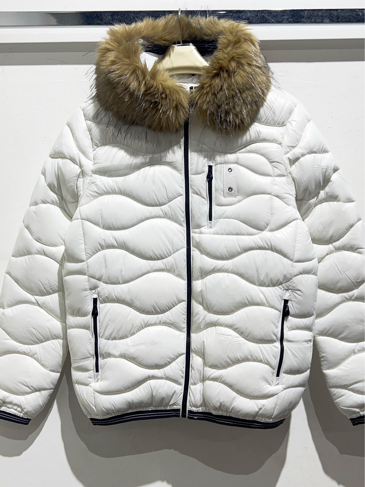 Piumino cappuccio fur bianco uomo